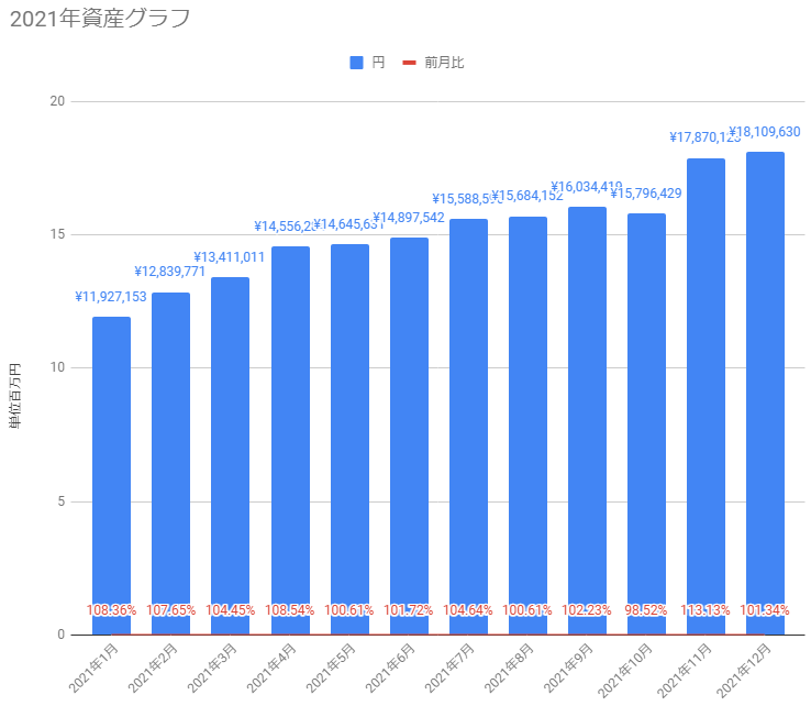 もともと年初来では総資産額1500万円を目標にしていましたので、年間ガイダンスとしては20%の引き合げという結果を残すことが出来て大満足しています。