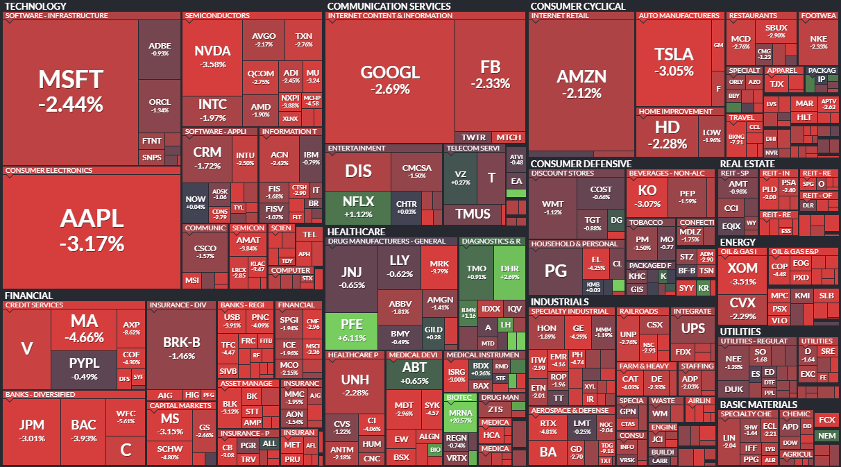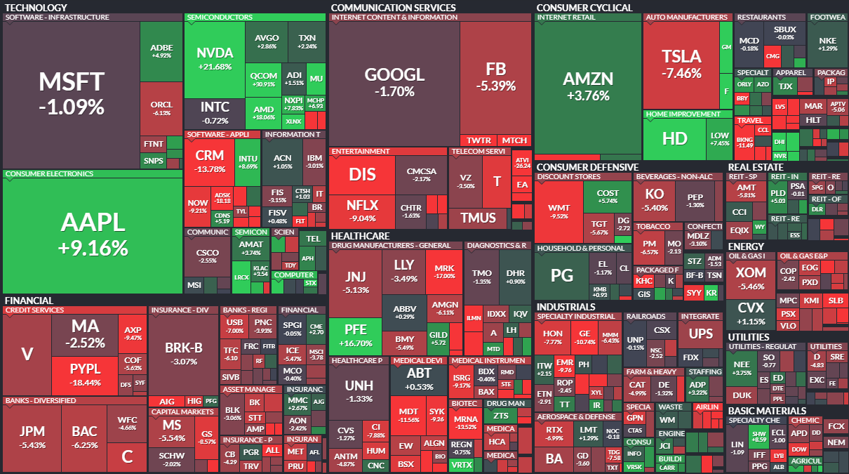 まずはいつものように、直近1か月の市場のパフォーマンスをヒートマップで振り返ってみたいと思います。