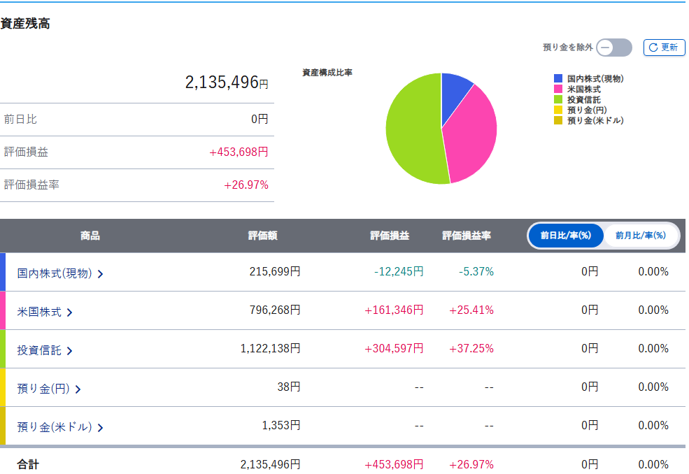 資産総額は213万5,496円でした。