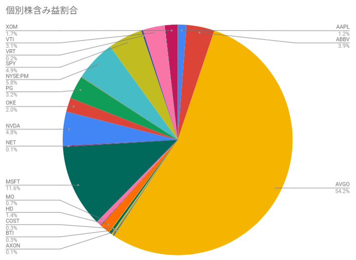 現時点での保有銘柄の含み益の割合は下記のとおり。