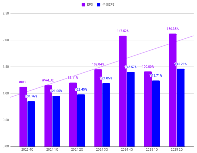 今回の決算でもEPS、売上ともにしっかり予測を上回る結果で、株価の反応も十分に手応えを得れるものになるでしょう。