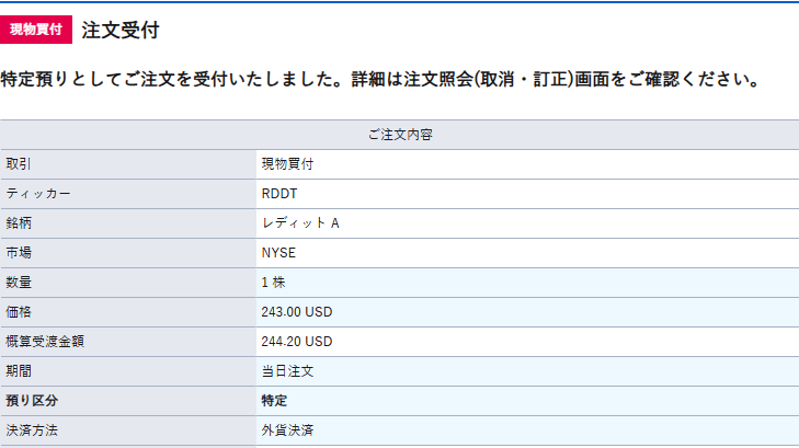 これにて、2025年のNISA成長枠240万円分の利用完了です。