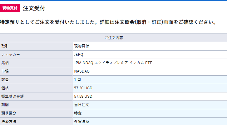久しぶりにJEPQを購入しました。