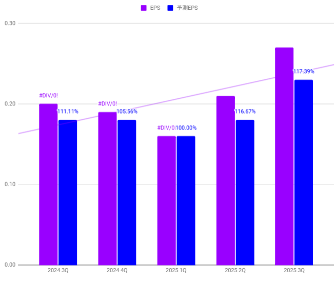 コンセンサスは0.23に対して0.27で乖離率+17.39%と期待を上回りました。