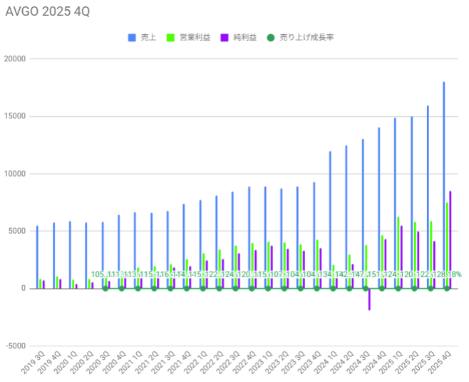 2025年の【AVGO】ブロードコムの4Q概要は以下の通りでした。