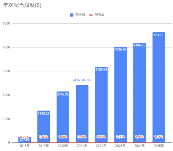 その年にもよりますが、凡そ年間の配当成長率としては7~10%程度ですね。