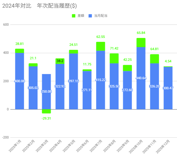 前回9月の配当が260.77ドルでしたので、今回結構大きく上回ることが出来ました。